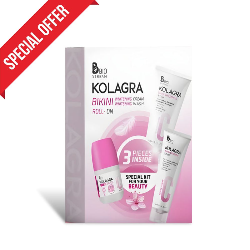 عرض كولاجرا مزيل العرق 3 في 1 + غسول تفتيح المناطق الحساسة + كريم تفتيح المناطق الحساسة